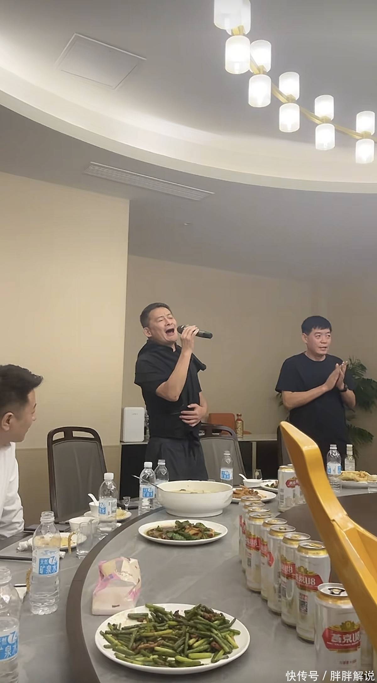 然而,令人意外的是,餐桌上的菜品并不如预期的高端。虽然是一个豪华的饭局,但竟然也出现了像蒜苔炒肉这种看似简单的大众菜肴。网友们调侃道,虽然场面奢华,但这菜品实在是掉了档次。怎么会有蒜苔炒肉这种菜出现在五星级酒店的聚会中呢?这种反差让人忍不住笑出声来。