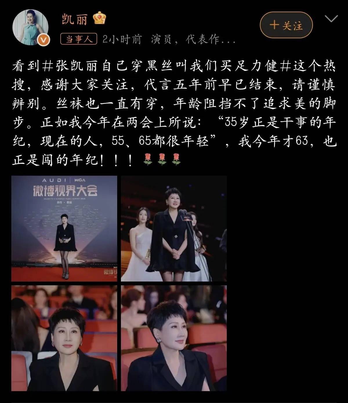 她的回应挺清楚的:第一,她和足力健的合作五年前就已经结束了;第二,她平时也会穿丝袜,觉得爱美这件事不分年龄;第三,她今年63岁,正觉得是还能好好拼搏的年纪呢。