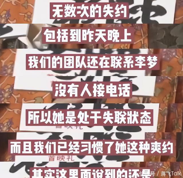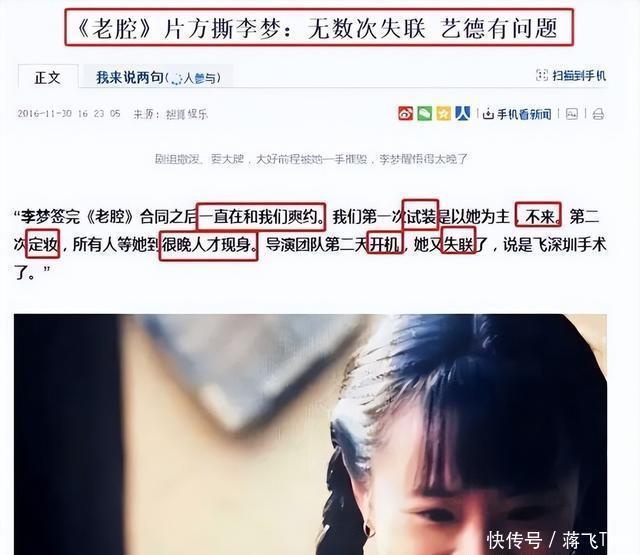 “剧组噩梦” 李梦最著名的标签,是“耍大牌”。 剧组的演员、化妆师、道具组,都被她折磨过。 在《老腔》剧组,她迟到、失联,不定妆、不试装,甚至一度消失。