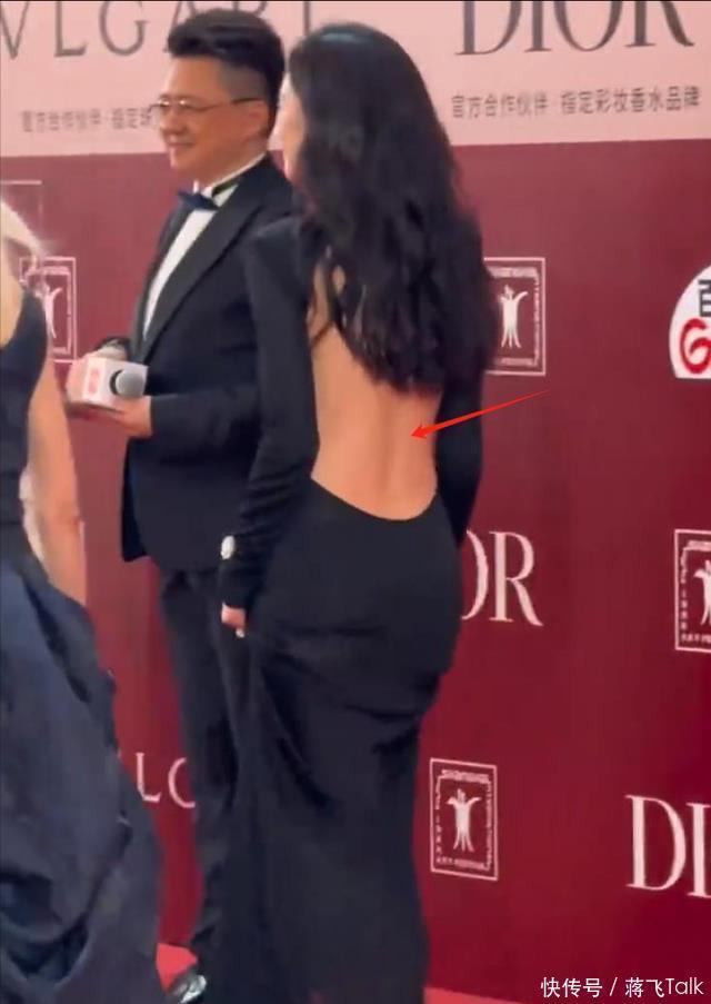 红毯“真空装” 但李梦的戏码,从不止于片场。 第26届上海国际电影节, 她穿了一身几乎透明的黑纱裙,背部完全裸露。